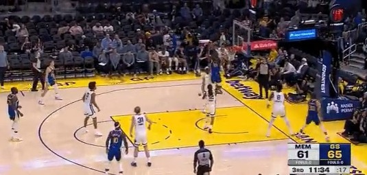 2025-10-28 17:36:22攻防建功!库明加送大帽后下快攻 接库里传球上篮得手