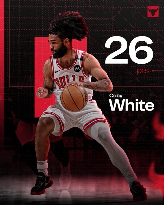 公牛官方发布数据,这是怀特连续第九场砍下20+,是其职业最长连续20+新纪录。